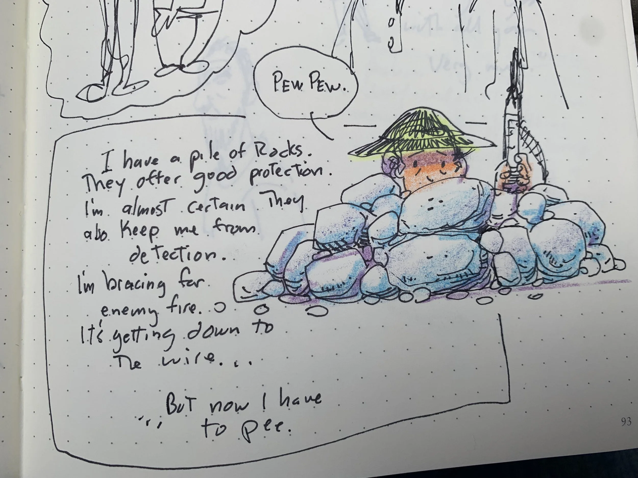 There are good character names, story ideas, and gags that I expunged from my mind onto notebooks. They pile up. Looking back over them helps when I sit down to come up with something and just end up staring at the blank page.